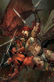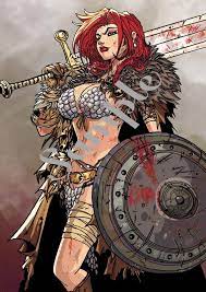 Red Sonja is one of my favorite comics a half naked red haired warrior woman who kicks ass. Red Sonja is a fictional sword and sorcery comic-book superheroine created by writer Roy Thomas and artist Barry Windsor-Smith for Marvel Comics in 1973 partially based on Robert E. The movie starred Brigitte Nielsen and featured Arnold Schwarzenegger.